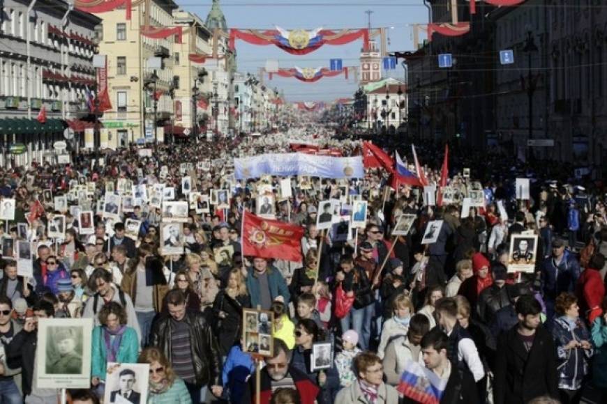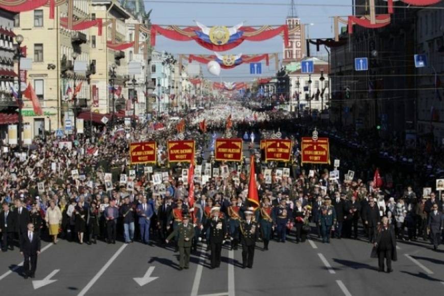 На празднованиях 9 мая в Петербурге жители города прошли по Невскому проспекту в фотографиями своих родственников, которые участвовали в Великой Отечественной войне. В акции приняли участие несколько тысяч человек. Антон Ваганов